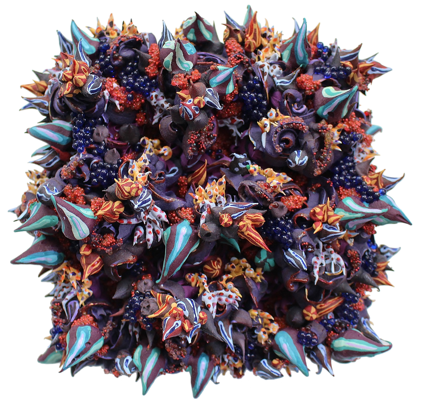 Stellifur, 2017, Ultralight, glass beads and pigment dispersions on panel, 9 x 9 x 4 inches, private collection